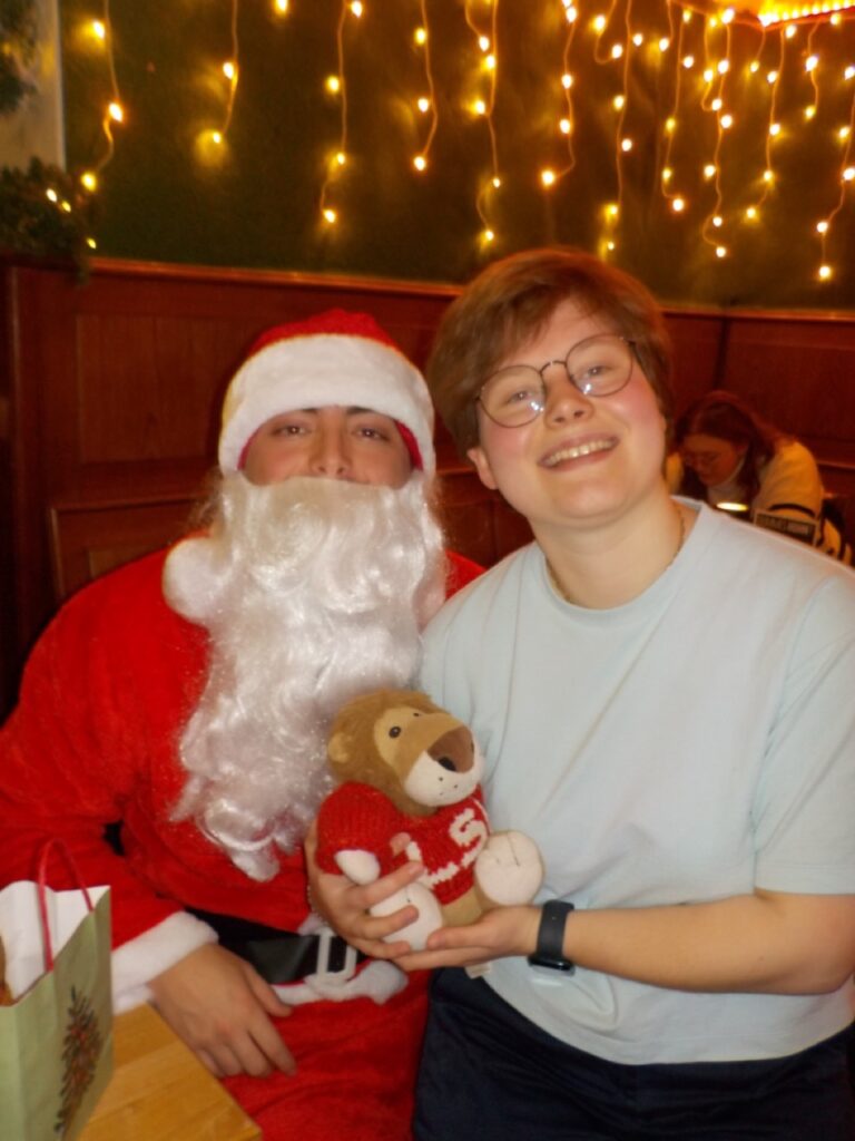 De 4. Dezember hate mir net nëmme wéi all Donneschdes eise Stammdësch, ma mir kruten och e flotte Besuch! De Kleeschen ass eis besiche komm, wat eng Éier!